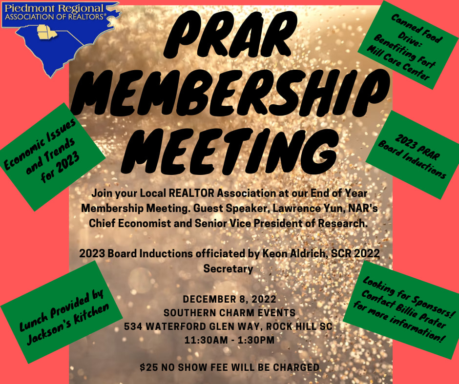 PRAR December Membership Meetings, 2023 Board Installation, and Annual Awards. Our Guest Speaker for the meeting is Mr. Lawrence Yun, NAR Cheif Economist to give us an Market Outlook for 2023. SCR 2023 Treasurer will conduct the Board Installation. Doors open at 11AM. Food Provided by Jackson's Kitchen Catering!